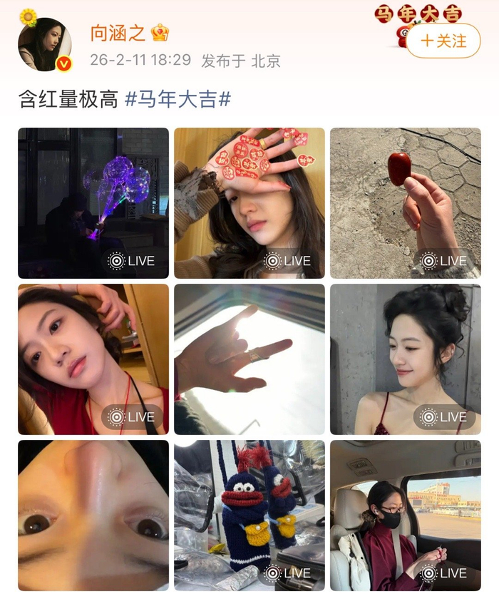 向涵之红色造型迎新年 娱情Lab 02.1218:44 关注 #向涵之含红量极高# 丨#向涵之红红火火过年#@向涵之 这一波红色暴击真的太喜庆了新年氛围感已到位,涵之这是迫不及待要过年了吧!红红火火,这就是迎接新年的正确打开方式