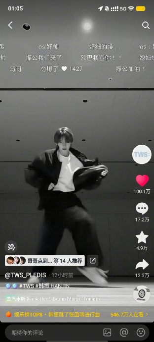 TWS成员韩振单人视频最快多久获得百万点赞?