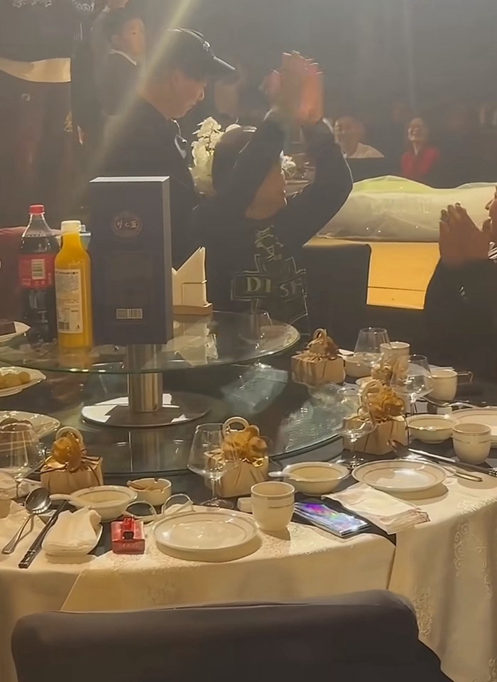 郭麒麟接到捧花后全场也开始起哄,他讲完话后立刻便坐了下来,以免再被套路。