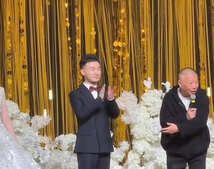 郭麒麟拿过话筒后,简单向师弟送去新婚祝福,虽然平日里在台上表演时,郭麒麟能说会道,但真到婚礼现场了,他却有些词穷,显然他没有准备这一块儿。