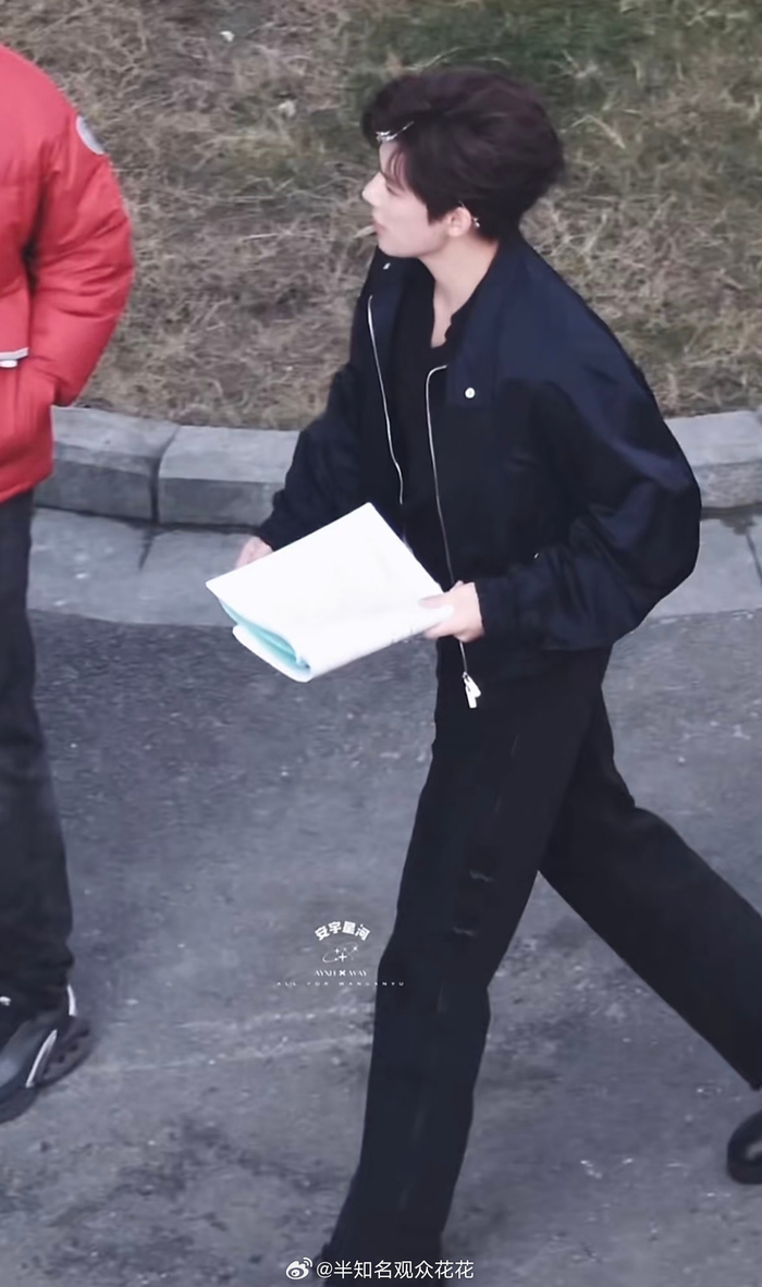 王安宇黑色夹克造型亮相新剧开拍