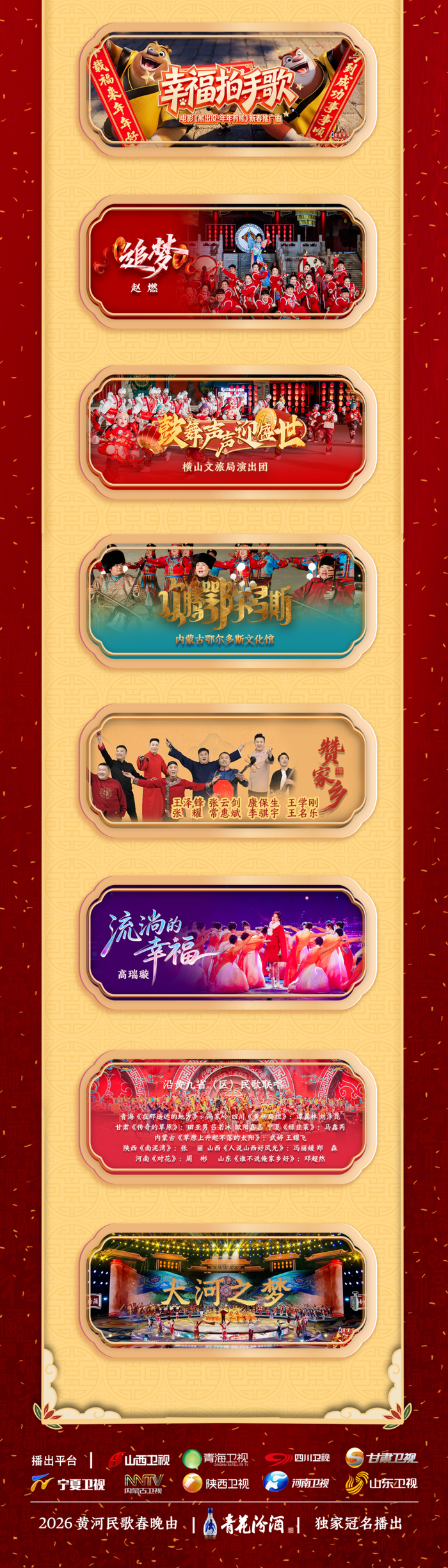 全阵容解锁!《2026黄河民歌春晚》完整节目单正式发布 太原广播电视台 太原广播电视台官方账号 02.1316:20 关注 今晚7:35锁定山西卫视“大河奔腾 美美与共”2026黄河民歌春晚共赴新春之约~编辑/ 郝素燊 韩彦霆(实习)
