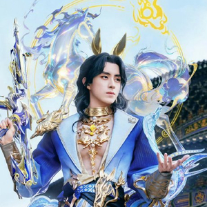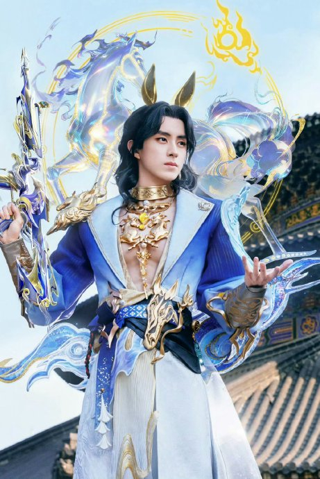 惊艳视觉效果:敖瑞鹏的"天马神君"造型以蓝白渐变战袍搭配鎏金配饰,胸前双马金饰奔腾欲飞,眼尾微扬的清隽面容被赞"古风建模脸",仙气与贵气并存;