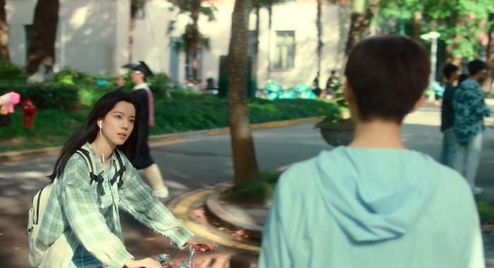 两人在国内顶级校园内的初见,导演也用了同样的拍法,仿佛爱意只能通过目不转睛来表达。