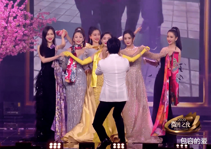 微博之夜六位女明星丝巾走秀,土味合影变时尚,照片太赏心悦目