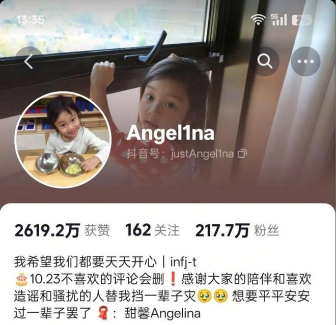 如果仔细留意,如今12岁甜馨抖音账号的头像和背景图,使用的也是仍旧是父母离婚前小时候的照片,可见甜馨是多么期望有一个正常圆满的家庭。