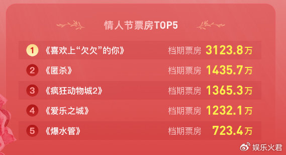 秦霄贤王影璐主演《喜欢上“欠欠”的你》,登顶情人节档票房冠军
