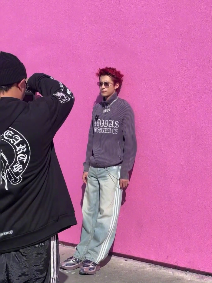 #王鹤棣洛杉矶街头拍摄##网友LA粉墙偶遇王鹤棣#