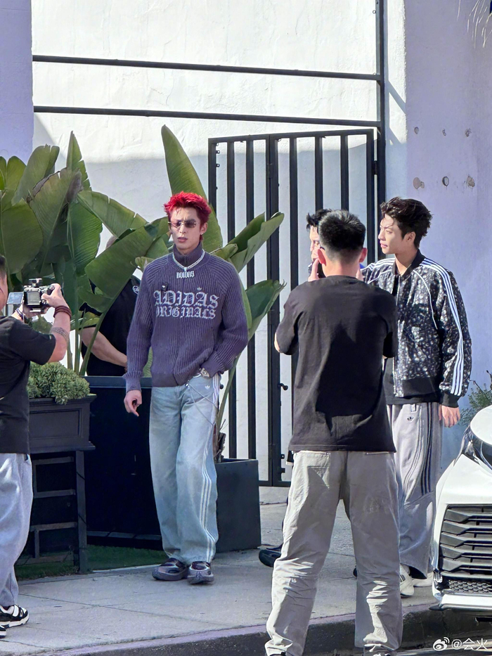 王鹤棣洛杉矶街头拍摄引网友偶遇