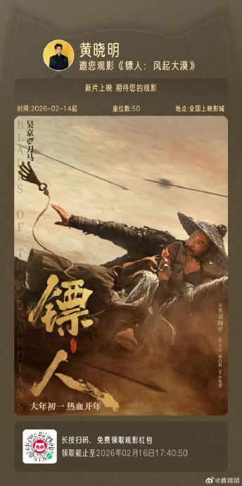 2026年春节档唯一硬核武侠片《镖人:风起大漠》将于2月17日(大年初一)全国上映,影片以隋末大漠为背景,集结吴京、谢霆锋、于适、陈丽君等四代演员,呈现一场融合热血动作与江湖道义的视听盛宴。