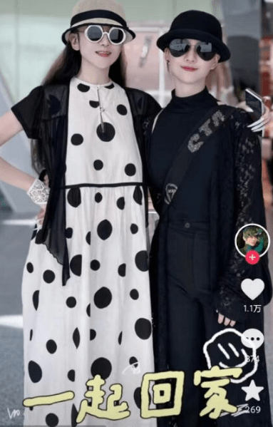 从视频中可以看出,杨丽萍和小彩旗一起现身机场,准备回老家云南大理避暑。杨丽萍穿着一件黑白波点裙,搭配黑色小衫、帽子和墨镜,时髦又不失气质。而小彩旗则选择了一身全黑的装扮,背心连衣裙、蕾丝长衫、斜肩包包都是黑色的,给人一种低调又有个性的感觉。两人走在一起,虽然风格不同,但却很有亲切感。