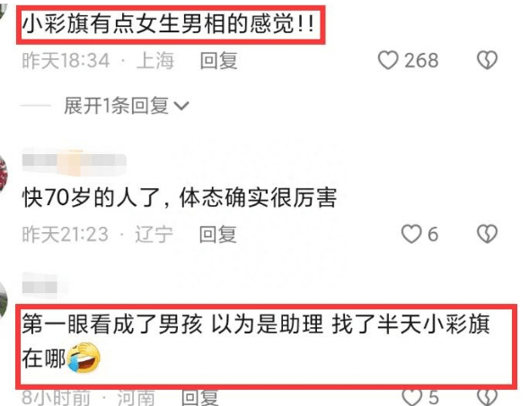 网友看到这段视频后,纷纷留言表示惊喜和赞美。有人说:“杨丽萍真是永远的女神啊,64岁还这么美!”“小彩旗越长越像杨丽萍了,下巴都一样!”“两个舞蹈家在一起真是太好看了!”也有人注意到了小彩旗的变化:“小彩旗现在好像男孩子一样,很帅气!”“小彩旗以前是清纯美少女,现在是酷酷的少爷!”“小彩旗推着行李好贴心啊,姨妈指甲太长了吧!”