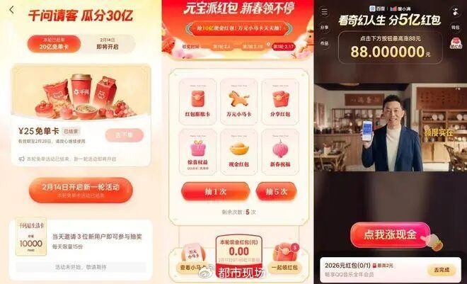 (图源:千问、元宝和文心红包活动截图)