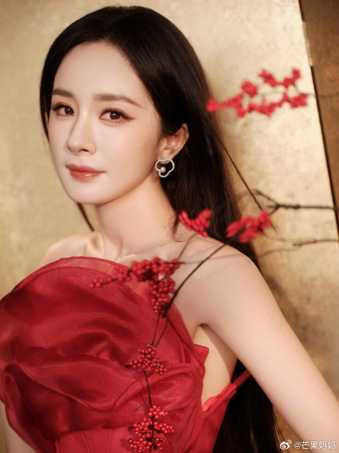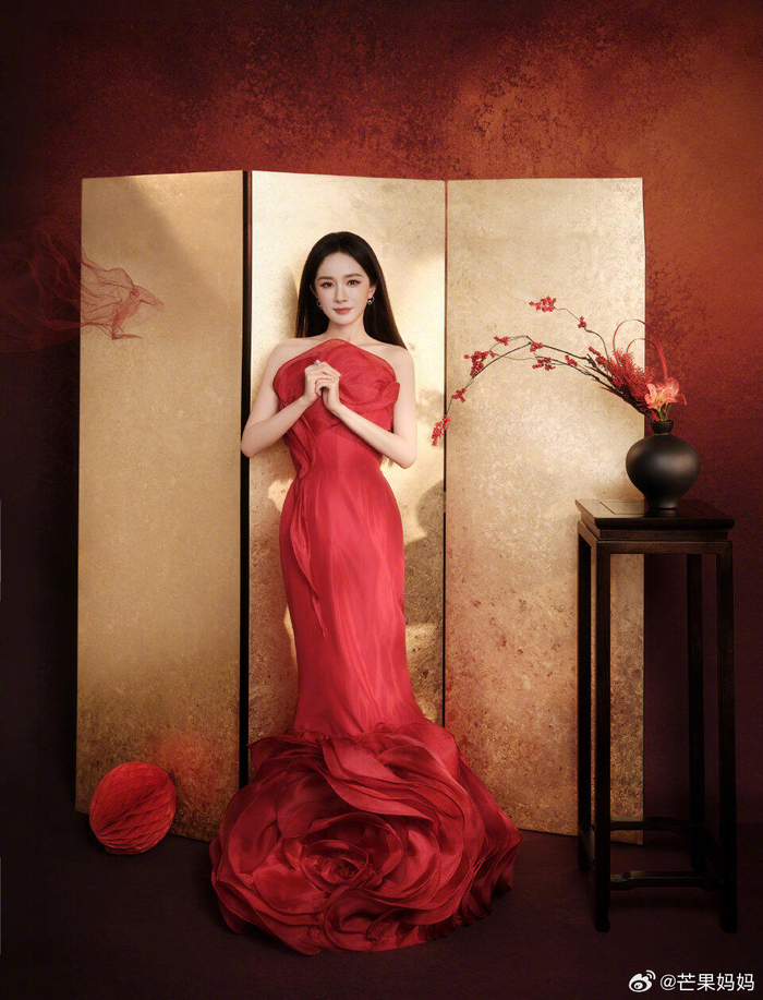 杨幂发布新春贺岁图,红玫瑰造型亮眼