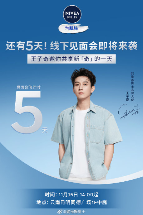 2025年11月,作为妮维雅男士品牌大使空降昆明同德广场活动,主题"双向奔赴"突出商业互动属性。