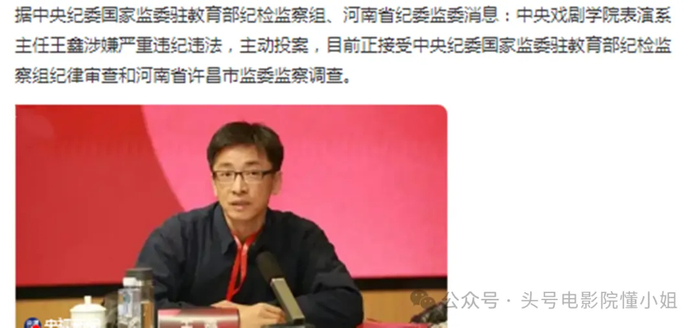 就在王鑫被查消息发布前一天,中戏表演系原主任陈刚,主动投案,陈刚的明星学生也不少,包括章子怡、孙红雷、王千源等。