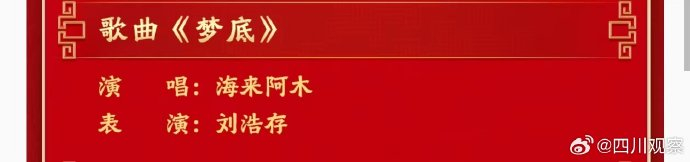 海来阿木独唱新歌《梦底》,刘浩存担任舞蹈表演部分。这是两人首次合作,也是海来阿木首次在春晚舞台独唱。