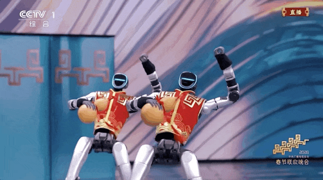 然后,宇树机器人燃爆全场!宇树科技机器人携手河南塔沟武术学校带来创意武术节目《武 BOT》。节目中,宇树科技人形机器人与武术少年同步出招,踢腿、拳法、棍法刚劲利落,精准动作尽显中国功夫气势。据了解,这场表演是塔沟武校第23次登上央视春晚舞台,让河南传统武术与前沿科技在国家级舞台上交相辉映。