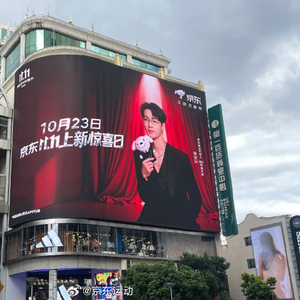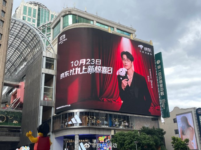京东系账号(家电家居、外卖、运动等)同步发起“张艺兴痛楼打卡”话题,结合地域性宣传(如上海美罗城巨幕广告),形成立体传播网络。