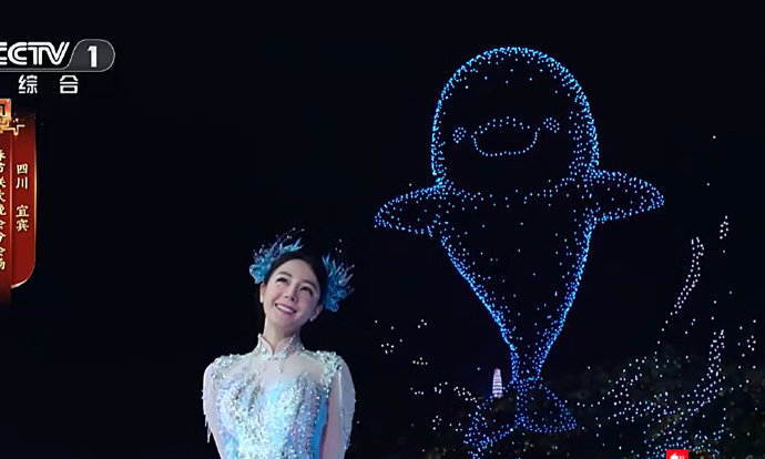 领衔表演舞蹈《立上游》,化身“人鱼公主”或“江豚公主”,舞台以水幕光影呈现“春江跃出灵动”的意境,身姿与三江夜景交融。