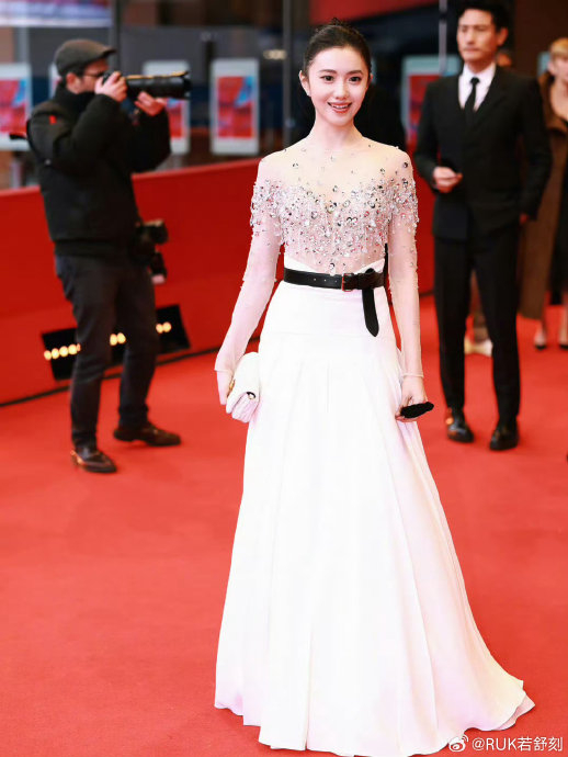 她在柏林的三套造型成为现象级话题:首日Photocall环节的简约黑裙搭配Chaumet珠宝,被外媒誉为“优雅黑天鹅”;次日红毯的Miu Miu特别定制白裙则彰显“温婉白天鹅”气质;第三套裸粉色钻饰挂脖裙凸显仙气灵动。这些造型不仅登上全球时尚媒体,更被解读为中国新生代演员的审美自信——用“去工业化”的天然感(如生图透亮肌理)打破西方对东方美的刻板想象。