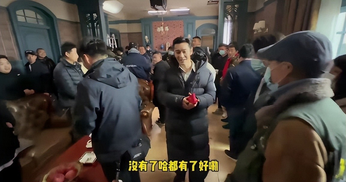 23. 黄晓明化身“善财童子”从导演制片到灯光场务再到保洁阿姨全员皆获一份“开工利是”红包场面热闹非凡。