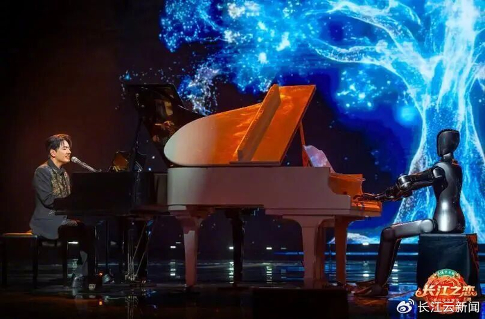 开场节目中,机器马身着华服与成熟舞者同台热舞,憨态可掬;2025的大热神曲《大展宏图》再度升级,多台机器人登台起舞,为热闹的舞台平添科幻感;海来阿木深情演唱《不如见一面》时,机器人坐在钢琴前与其完成对弹,仿生蝴蝶环绕飞舞,为舞台同时注入未来感与梦幻气息。科技元素并没有喧宾夺主,而是恰到好处融入歌舞戏曲,成为烘托年味的时代亮色。