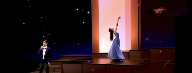 直到海来阿木和刘浩存登台表演,让人眼前一亮,一个唱歌一个伴舞,配合的相当的默契。