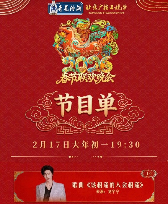 刘宇宁演绎治愈金曲《该相逢的人会再相逢》(第10个节目),连续两年亮相北京台春晚。
