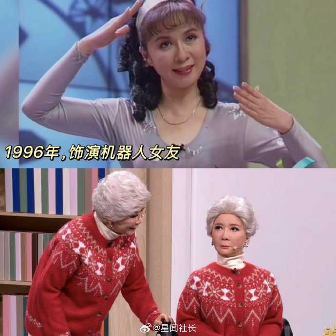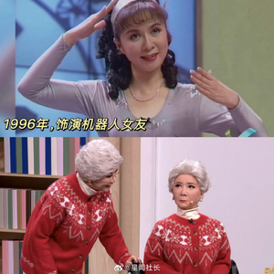 蔡明以戏剧化的烟熏妆造型亮相,突破传统春晚喜剧演员的亲和形象,通过冷峻金属感妆容暗合科技主题,引发"赛博奶奶"的热议。这一设计既呼应其1996年科幻小品《机器人趣话》的前瞻性,又以视觉反差强化时代变迁的张力。