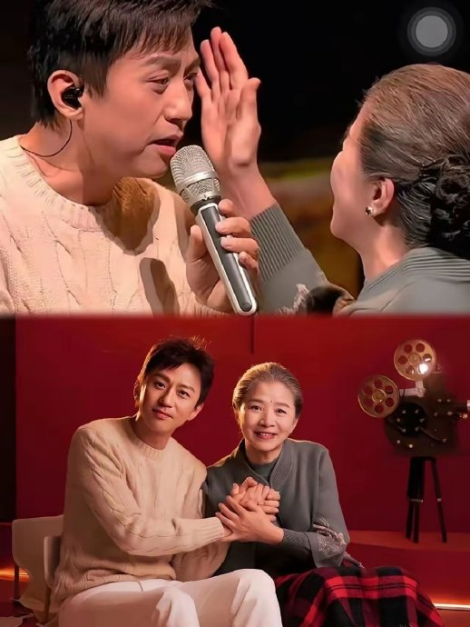 张艺谋将标志性的电影美学植入舞台设计,以“流动胶片”为核心视觉符号。舞台背景的动态屏幕上,孩童蹒跚学步、成长远行的瞬间被转化为泛黄胶片影像,随旋律徐徐流转。这种视觉叙事不仅构建了“时光影院”的隐喻空间,更通过蒙太奇式转场强化了歌词中“母亲珍藏记忆”的母题。张艺谋摒弃了春晚惯用的华丽堆砌,用极简的光影交织(如台下观众手持红光汇成暖色海洋)营造沉浸式氛围,使舞台成为承载集体记忆的情感容器。