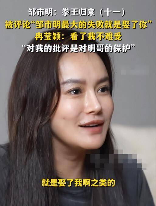 对于大家针对她的批评,冉莹颖表示,实际上这都是出于对邹市明的关爱与呵护之情,对此她是能够理解的。
