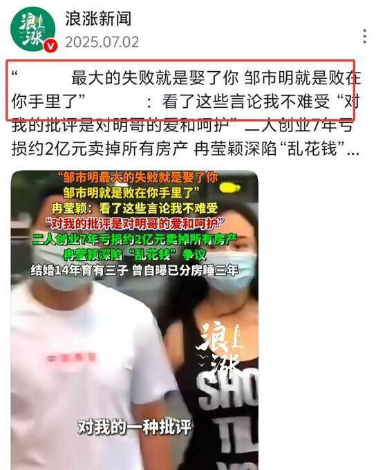 网友更是直言邹市明最大的失败就是去了冉莹颖。