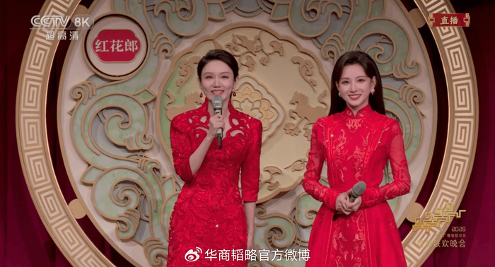 机器人翻腾跳跃,歌舞流光溢彩。而在这些热闹背后,一抹“中国红”贯穿始终——从角标到节目,从公益片到零点祝福,红花郎的身影出现在多个关键时刻。