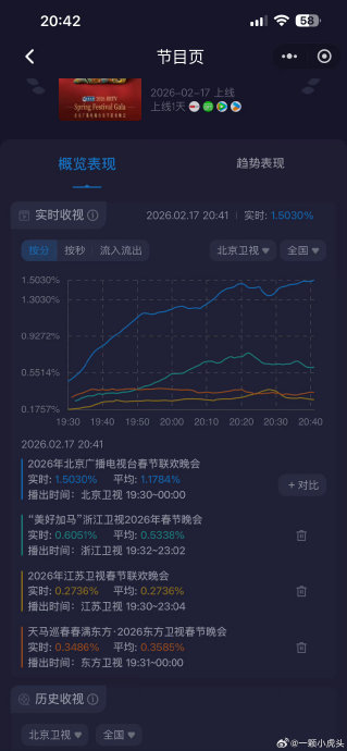 2025年电视总收视份额已创12年新高,而2026年春晚檀健次舞台的收视爆发,进一步印证晚会经济与实力舞台的号召力仍不可替代。