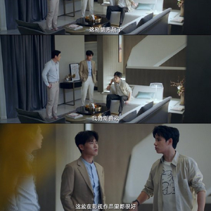 胡先煦通过具象化的视觉符号构建人格差异:林臻东的眼镜、一丝不苟的西装与微蹙的眉头,勾勒出理性克制的精英形象;驰臻东凌乱的呆毛、大开大合的肢体动作与手舞足蹈的谈吐,则外放张扬如市井烟火。生理细节设计尤为精妙——林臻东苏醒时下意识寻找眼镜,驰臻东则习惯性摘镜,暗示人格切换甚至影响生理机能。胡先煦更注入独创行为密码:驰臻东签字时的潦草墨渍、电话中刻意模仿英国腔的荒诞感,赋予角色鲜活肌理。