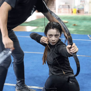 越剧演员陈丽君饰演的阿育娅,将戏曲“翎子功”融入马术打戏。她全程无替身完成“马腹藏身射箭”动作:疾驰中俯身贴马侧,以90°下腰拉满弓弦,虎口因反复拉弓撕裂渗血。为精准命中移动靶心,她在55℃高温下每日驯马6小时,从零基础练至人马合一,沙暴中策马弯弓的镜头,融合了古典身段与游牧骑射的暴力美学。
