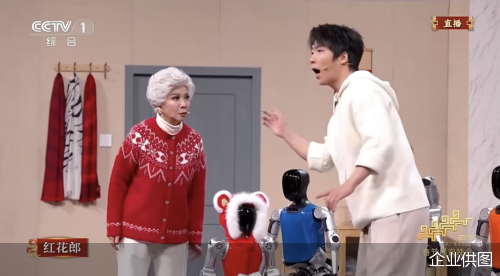 在短剧《奶奶的最爱》中,蔡明和四个机器人演绎着科技时代对真实陪伴的渴望,屏幕角落悄然出现了“红花郎”的角标。