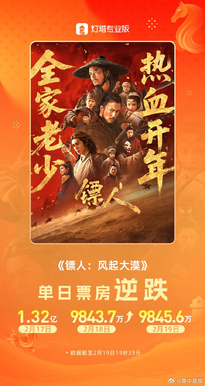 镖人票房逆跌成春节档首部逆跌新片 鲁中晨报 《鲁中晨报》官方账号 02.1920:48 关注 #镖人票房逆跌# 据灯塔专业版,影片《镖人》今日票房超过昨日票房,成为今年春节档首部实现单日票房逆跌的新片!#镖人春节档首部逆跌新片# (淘票票)