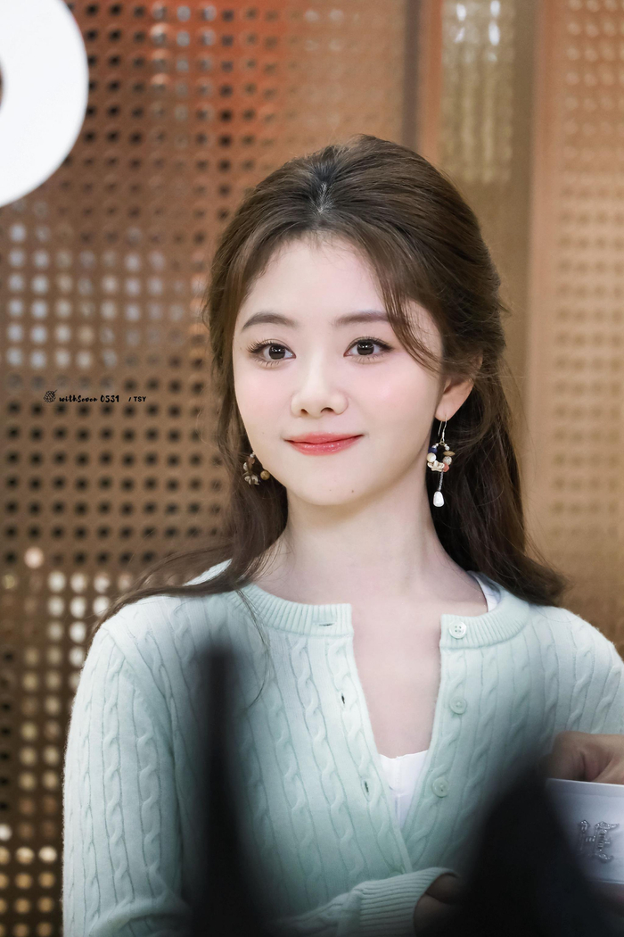 谭松韵 薄荷绿针织开衫勾勒温柔轮廓,笑意盈盈间尽是治愈气息。