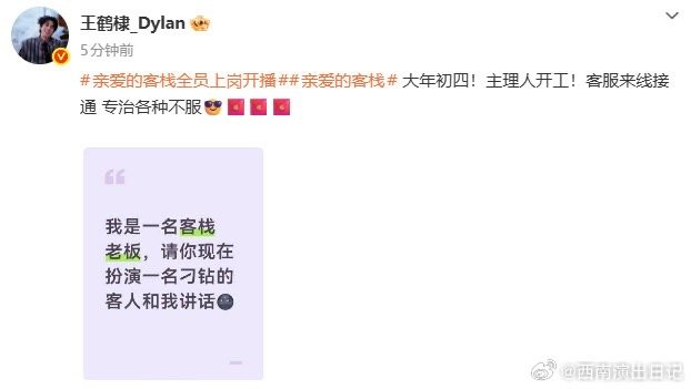 #王鹤棣大年初四开工#王鹤棣客栈主理人开工!终于盼来开播,今晚一起来看《亲爱的客栈》