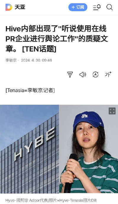 类似操作亦见于公司内斗。2024年4月,HYBE职员在匿名社区Blind爆料,指控闵熙珍团队雇佣网络公关公司操纵舆论,大量生产“贬低HYBE、美化ADOR”的帖子。尽管无直接证据,但法院在2026年2月的判决书中指出,闵熙珍多次通过“选择性披露信息”发动舆论战,其目的“并非保护艺人,而是争夺控制权”。