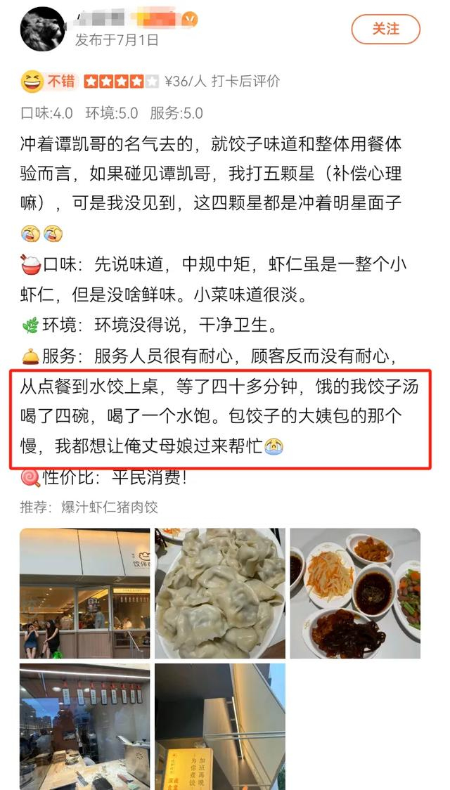 饺子馆开业初期确实遇到了一些问题。由于采用纯手工制作,阿姨们包饺子的速度有限,导致出餐速度慢,引发顾客不满,在网上收获不少差评,有食客在网上吐槽:饺子馆出餐慢,要等很长时间才能吃上。