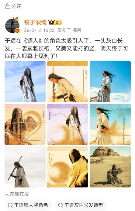 这一角色的成功,根植于演员破界重塑的能力。于适不仅以真骑术、真打戏赋予竖凌冽江湖气(长刀后翻、马背腾挪皆亲身上阵),更用文戏细节解构标签化侠客。白发异瞳的撕漫造型下,他将傲娇、洁癖(火场后扑入河中的执拗)、对“玉面鬼”称号暗含的得意鲜活性情注入,使弑杀者兼具“破碎感美人”的易碎与“慷慨且富有”的性张力。最终,竖未被黑暗吞噬,反在黑暗中辨明星辰——这恰是《镖人》对侠义精神的当代诠释:真正的强大,始于放下冠冕,忠于内心明月。