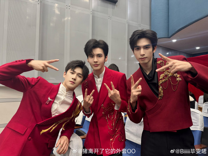 2026年央视春晚后台,毕雯珺与李昀锐、宋威龙三位人气新星身着红色演出服同框的画面,被网友调侃为“三大新郎官聚会”,他们松弛又充满反差的互动细节意外成为舞台之外的亮点。