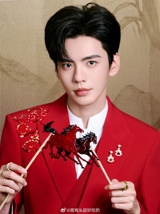 光影与色彩运用:红色丝绒西装搭配中式瑞兽花灯道具,在暖色调灯光映衬下,既凸显新年喜庆,又赋予舞台古典雅致的视觉美感。
