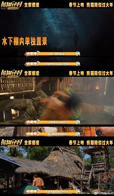 虚拟互动:面对CG制作的熊猫呼呼,成龙需无实物表演托举、翻滚等动作,魏翔表示“想象熊猫的重量感最难”,一个跌倒镜头需反复调整重心。