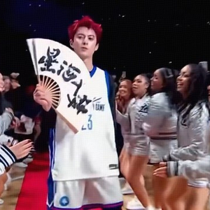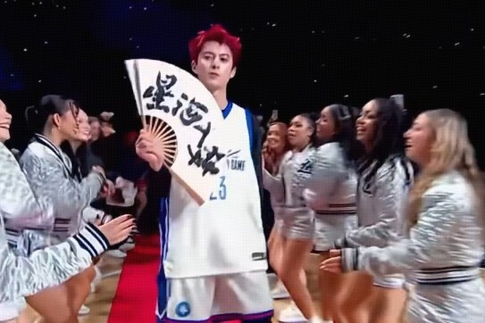 王鹤棣一头红发入场全明星名人赛,携带折扇为自己主演的电影宣传