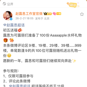 赵露思又给粉丝送礼物了,准备了100份水杯礼物,赵露思你也太好了,就这么爱可露丽