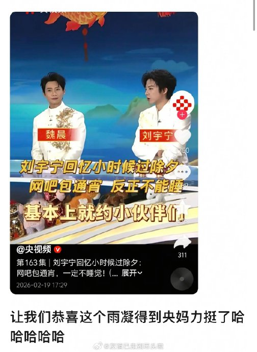 2026年央视春晚后台采访中,主持人询问家乡过年习俗时,刘宇宁脱口而出"和小伙伴去网吧包宿"的接地气回答。该言论迅速引发热议,部分网友批评其"不够正能量""上不了台面",而更多声音则认为这是"青春缩影"的真实表达。央视频随后发布采访片段,被公众视为官方对其真实性的认可。